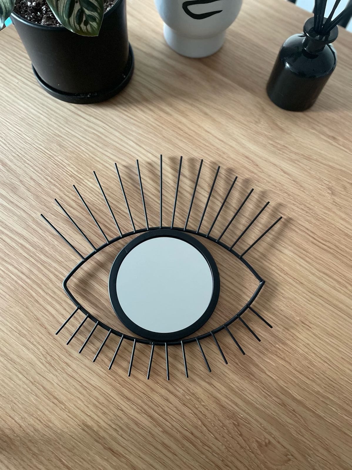 Espejo Ojo Nero, es metálico color negro de 29x25x14 cm.